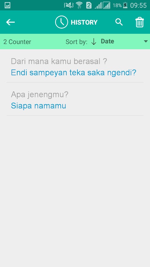 Это бесплатное приложение может переводить слова и текст с яванского на индонезийский и с индонезийского на яванский. Лучшее приложение для простого и быстрого перевода, которое можно использовать как словарь. Если вы студент, турист или путешественник, это поможет вам выучить яванский или индонезийский язык!