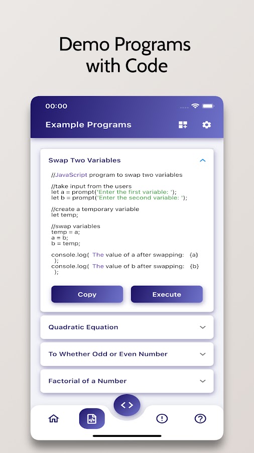 Скачайте приложение JavaScript Compiler — Run .js для Android бесплатно - последняя версия (1.1.40) уже доступна для установки на ваш телефон или планшет.