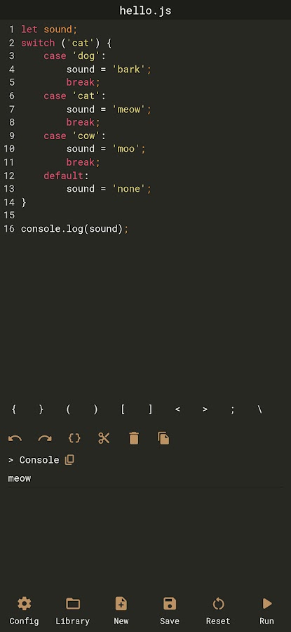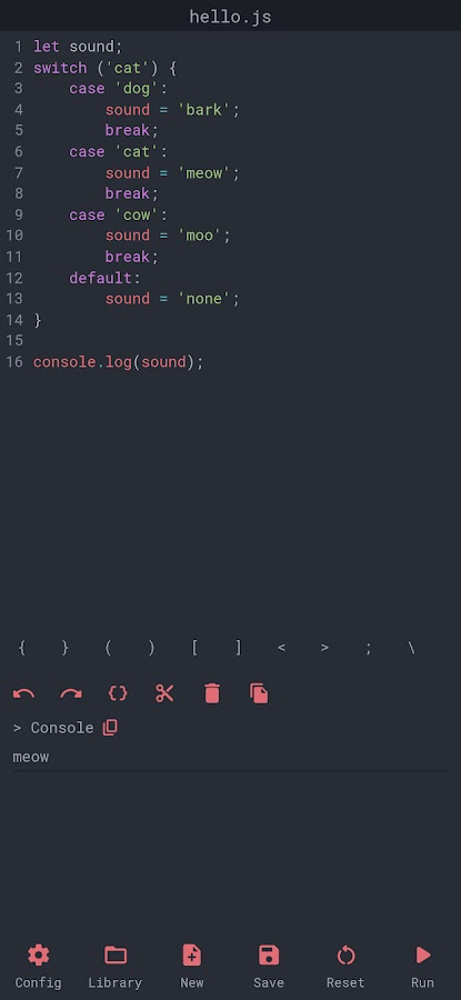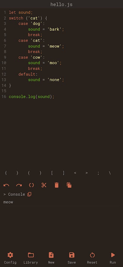 Минималистичный редактор кода JavaScript, который позволяет запускать консольные скрипты на ходу с вашего мобильного устройства.