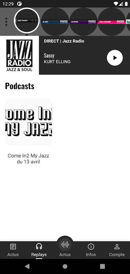 Применение Jazz Radio позволяет слушать вживую, где вы находитесь, а радио все Джаз, но также обнаружить и слушать потоковое полную программу всех своих веб-радиостанций