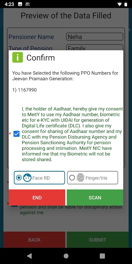 2. Приложение работает с использованием аутентификации по лицу, отпечатку пальца или радужной оболочке Aadhaar.