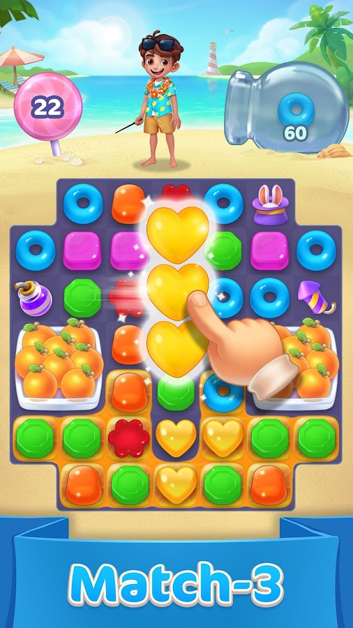 Приветствуем вас в мире игры «Jellipop Match»! Преобразите славный тропический остров в свой собственный кусочек рая! Проходите сюжетные задания с множеством сюрпризов! Повышайте уровни вместе с симпатичными и забавными персонажами!