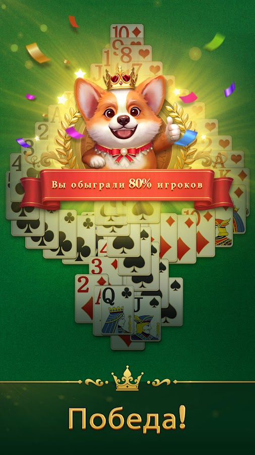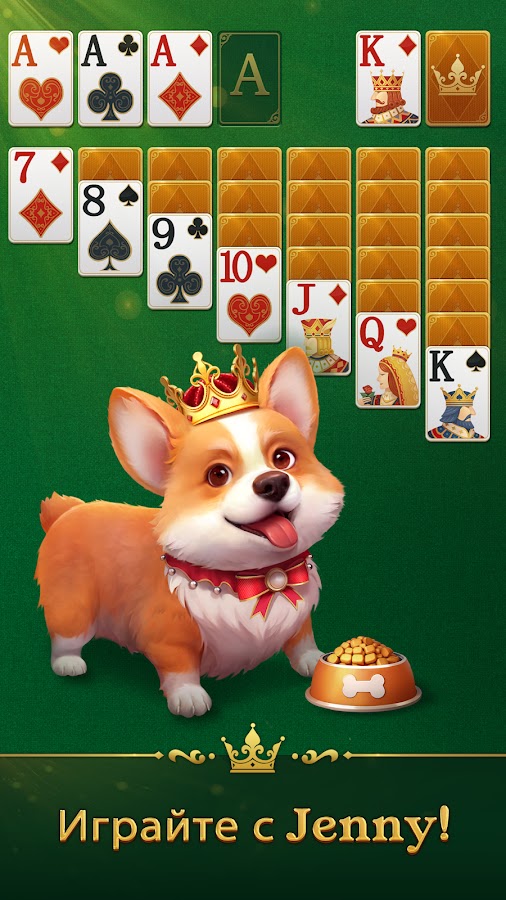 Наслаждайтесь и впредь любимыми бесплатными пасьянсами, получая щедрые награды, которые пополнят вашу коллекцию собачьего корма и алмазов. Присоединяйтесь к миллионам игроков, раскладывающих лучший бесплатный карточный пасьянс. Оцените элегантный мир, где вас ждут пасьянсы, королевские карточные игры и наш особенный компаньон корги Jenny в успокаивающей атмосфере.