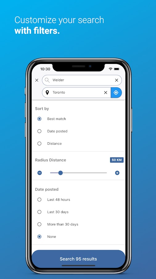 • Настройка поиска радиус расстояния, чтобы определить, где вы хотите работать.