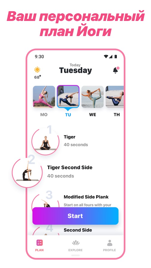 — 9 уникальных йога-классов с поддержкой высококачественного видео.