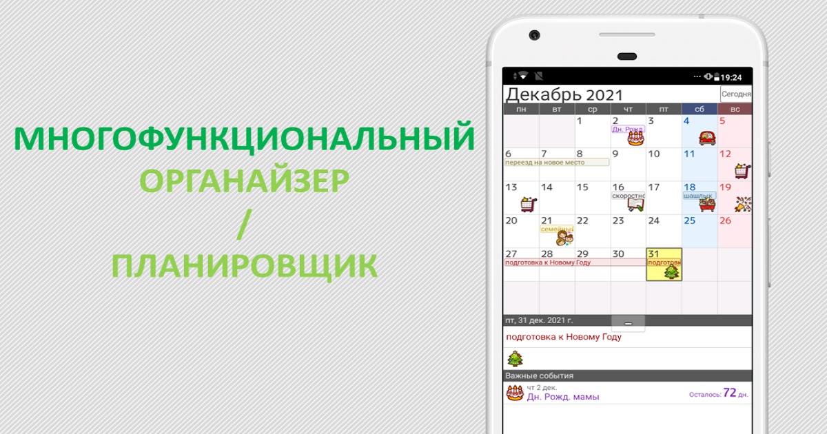 o Важные события отмечаются красным (или 20 цветов на выбор)
