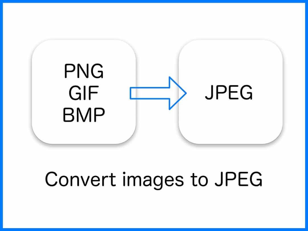 Файлы в формате PNG, GIF, BMP и т. д. могут быть конвертированы в формат JPEG.