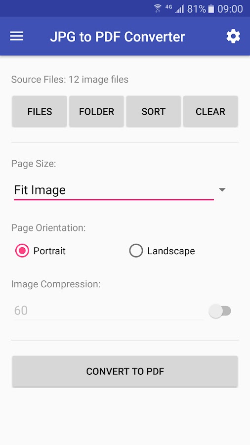 JPG в PDF Converter является простым в использовании приложением для преобразования нескольких файлов JPG в один PDF файл в автономном режиме.