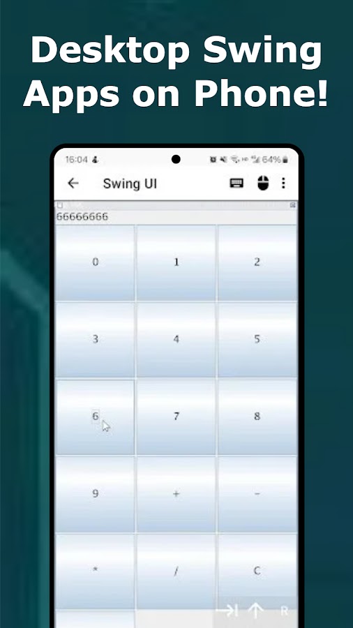 Запускайте приложения Swing в стиле настольных компьютеров с полным графическим интерфейсом на вашем устройстве Android.