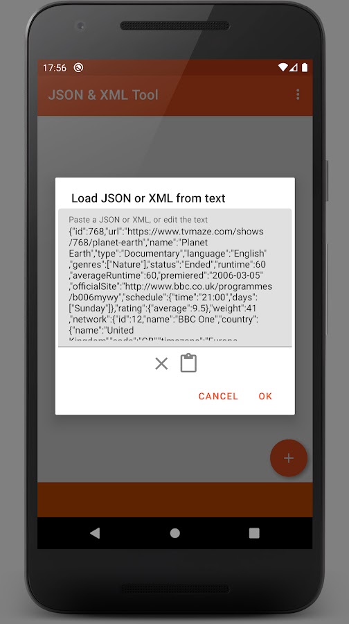 • Отредактируйте данные с помощью редактора JSON и редактора XML, предоставленного приложением.
