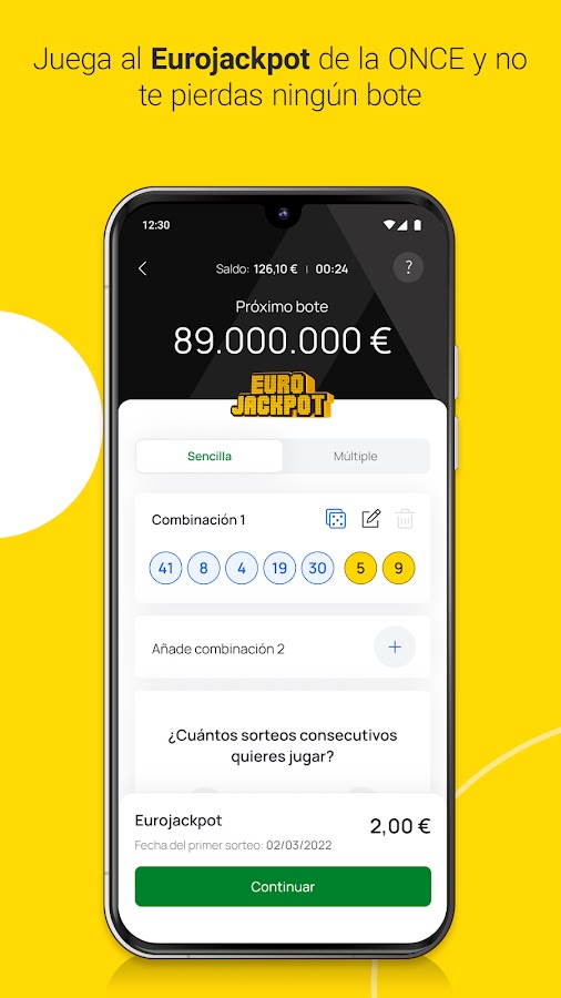 Теперь вы можете играть в ONCE Eurojackpot через наше приложение. Выберите свою любимую комбинацию для этого мега-розыгрыша в Европе и не пропустите ни одного джекпота. Розыгрыши проводятся каждый вторник и пятницу, с джекпотами до €120 000 000. Проверьте результаты ваших предыдущих покупок или отсканируйте свой билет Eurojackpot, если у вас есть физический билет.