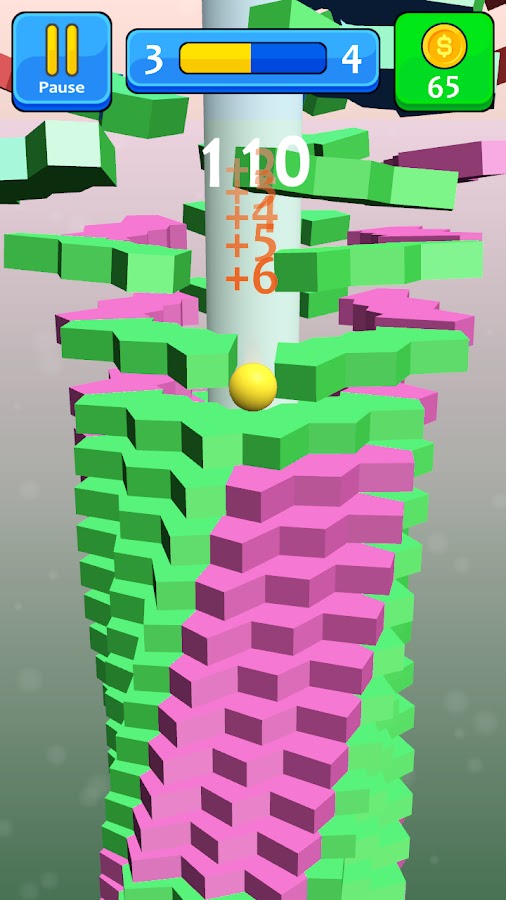 В этом случае мяч бол проваливается сквозь платформы. Вы можете вращать хеликс башню, чтобы не сломаться и не раздавить.