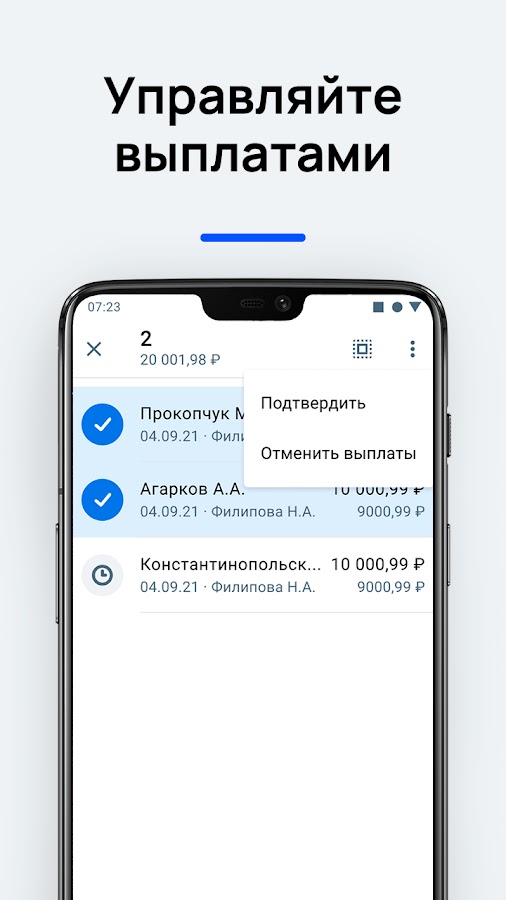 Подтверждение выплат, созданных вашими сотрудниками.