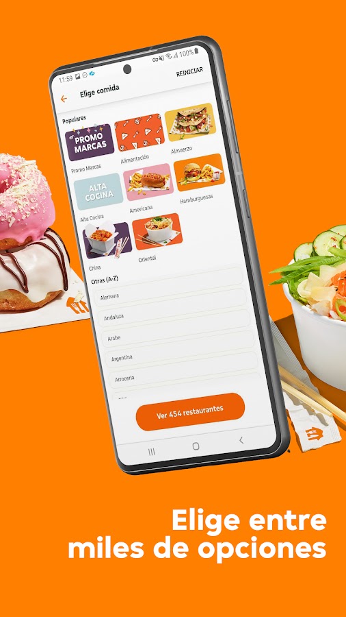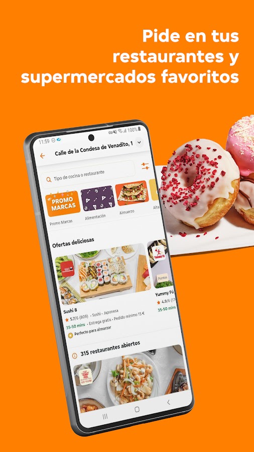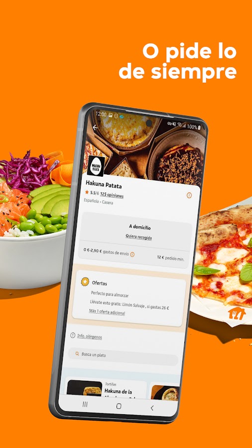 Just Eat — ведущее приложение для доставки еды в Испании, и у нас есть более 28 000 связанных ресторанов и заведений, где можно совершить покупку. У нас есть ваши любимые сети, такие как McDonald’s, Burger King, Telepizza, KFC, La Gran Familia Mediterránea, Papa John’s, VIPS, Goiko Grill, Foster’s Hollywood, TGB и многие другие, а также независимые рестораны рядом с вашим домом. С таким большим разнообразием у нас обязательно найдется то, что вы хотите заказать сегодня: пицца, суши, гамбургер, китайская еда, кебаб, тако, тайская еда и многое другое. Вы можете заказать завтрак, обед или ужин, а мы доставим его куда угодно и когда угодно.