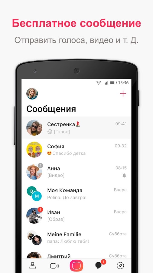 Отправляйте и получайте изображения, голоса, видео, местоположение, наклейки, GIF-файлы и т. Д. 1: 1 или в группах.
