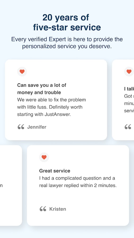 К JustAnswer присоединяются эксперты из самых надежных организаций мира, в том числе юристы Гарварда, врачи Калифорнийского университета в Лос-Анджелесе, компьютерные специалисты, сертифицированные Microsoft, оценщики Christie’s, ветеринары Калифорнийского университета в Дэвисе.