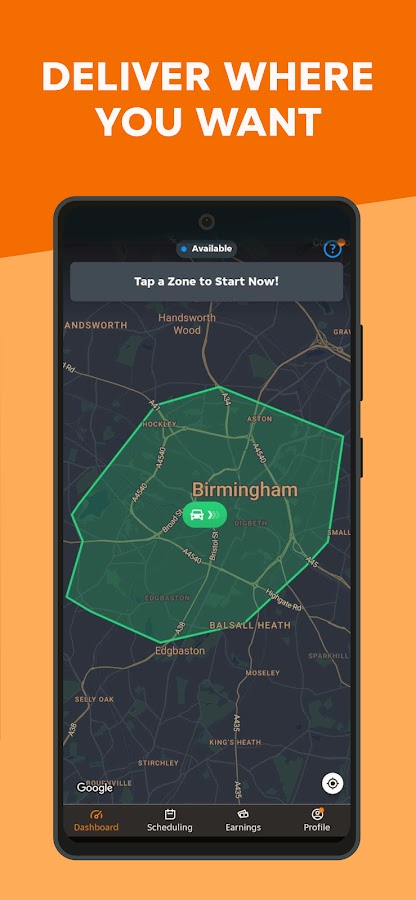 Примечание. Приложению Just Eat Courier требуется постоянный доступ к вашему местоположению при использовании приложения, чтобы показывать вам зоны доставки рядом с вами, сопоставлять вам новые предложения и отслеживать ваш прогресс во время доставки.