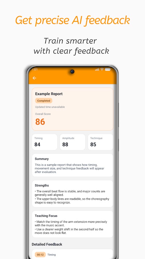 JustMove поможет вам разучивать хореографию, записывать себя, сравнивать с оригиналом и совершенствоваться с помощью Dance Check — нашей функции оценки на базе ИИ. Вместо того чтобы тренироваться вслепую, вы сможете просмотреть именно тот фрагмент, который танцевали, и получить обратную связь для более быстрого прогресса.