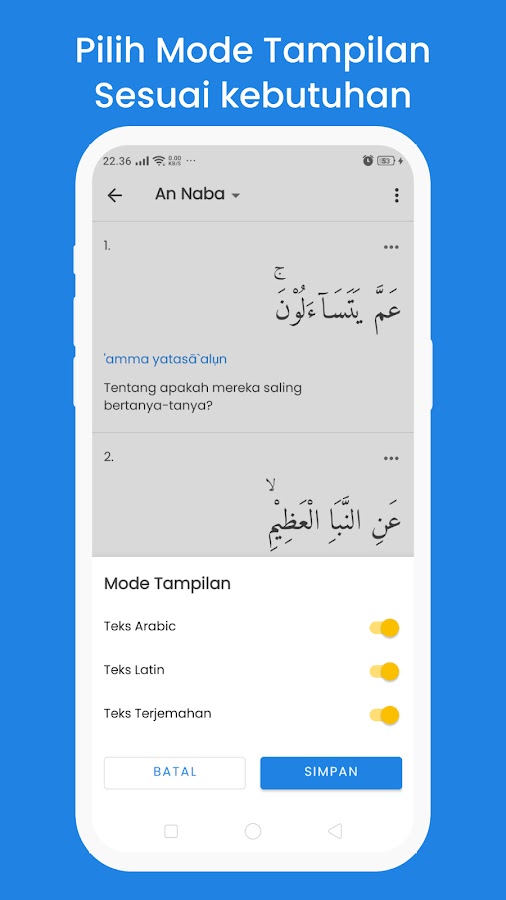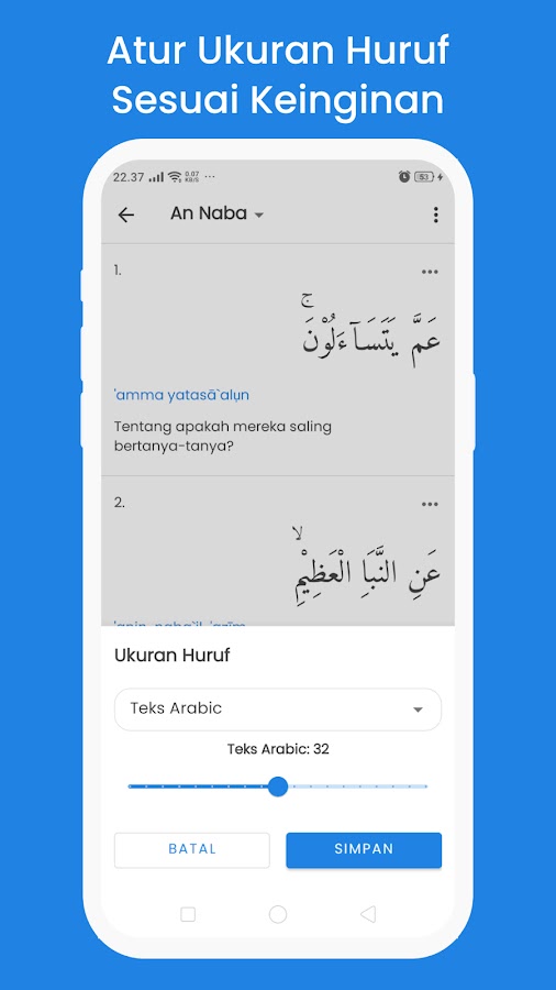 Этот Juz ‘amma будет продолжать развиваться с различными интересными и полезными функциями, такими как таджвид и пословное толкование Корана, а также цифровое аудио в формате mp3.
