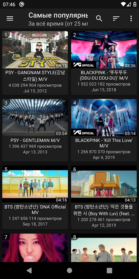 Вы также можете просмотреть наиболее просматриваемые K-POP музыкальные клипы за все время (выберите «Самые популярные» в навигационном меню)