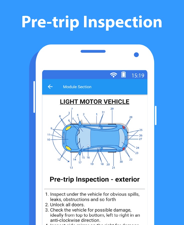 С K53 South Africa вы также получаете модули вождения/езды, которые помогут вам точно выполнять такие действия, как предрейсовый осмотр, параллельная парковка, управление скоростью, стыковка со стоянкой, поворот налево и т. д.