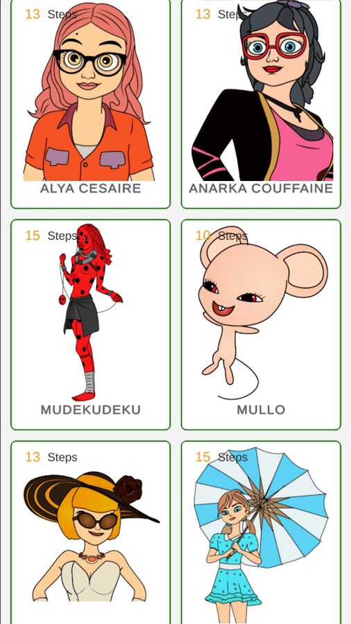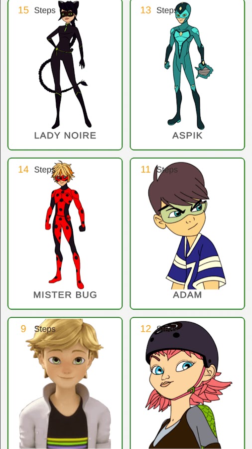 Божества — популярный мультфильм по всему миру с его уникальными персонажами. Если вы не знаете, как нарисовать главных героев, то это обучающее приложение для вас! Здесь вы найдете много уроков по шагам. Образовательное приложение, как нарисовать божьей коровки и кошачьи нуар шаг за шагом поможет вам нарисовать ваших любимых персонажей. Здесь вы найдете много уроков по шагам.