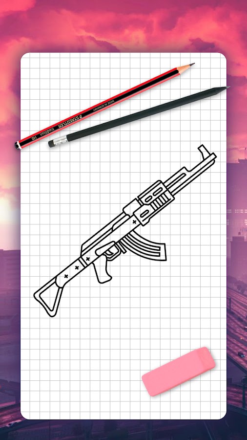 Пошаговые рисунки вашего любимого оружия. Хотите удивить друзей или просто научиться рисовать? Тогда это приложение специально для вас. Уроки разной сложности помогут вам отработать ключевые аспекты рисования. Вы легко представите, что и как вы будете рисовать. Получайте новые навыки и развивайтесь. Рисовать — это весело!