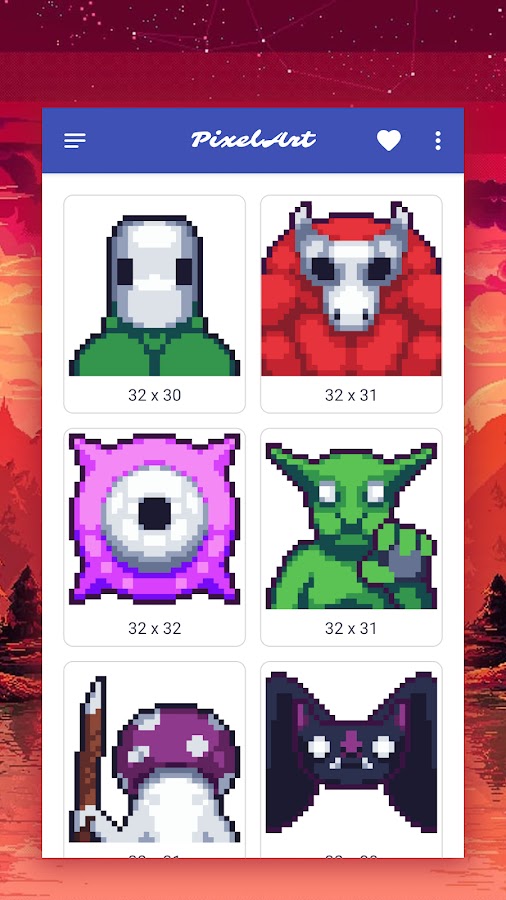 Все пиксельные изображения абсолютно бесплатны. Они доступны сразу после установки приложения. Просто установите приложение, выберите любого понравившегося пиксельного монстра и рисуйте.