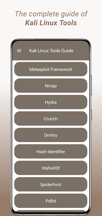 Приложение Kali Linux Tools Guide разработано, чтобы помочь тем, кто хочет изучить информационную безопасность и тестирование на проникновение с помощью инструментов Kali Linux.
