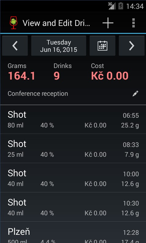 AlcoDroid — программа для учёта потребления алкоголя, журналирования выпитого и калькулятор содержания спирта (этанола) в крови. AlcoDroid поможет вам лучше справиться со спиртными напитками и, возможно, изменить своё отношение к алкоголю. Предусмотрена возможность учёта стоимости выпитого.