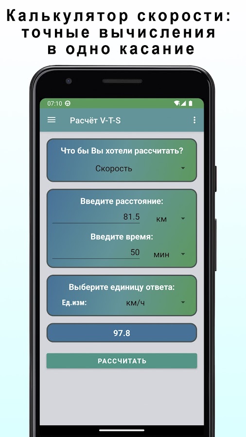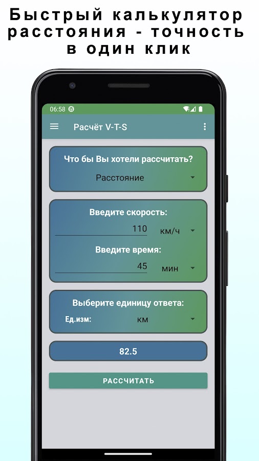 Наше приложение – ваш надежный помощник в путешествиях! Предоставляет вам мощный функционал позволяющий рассчитать скорость, время и расстояние в несколько простых шагов.