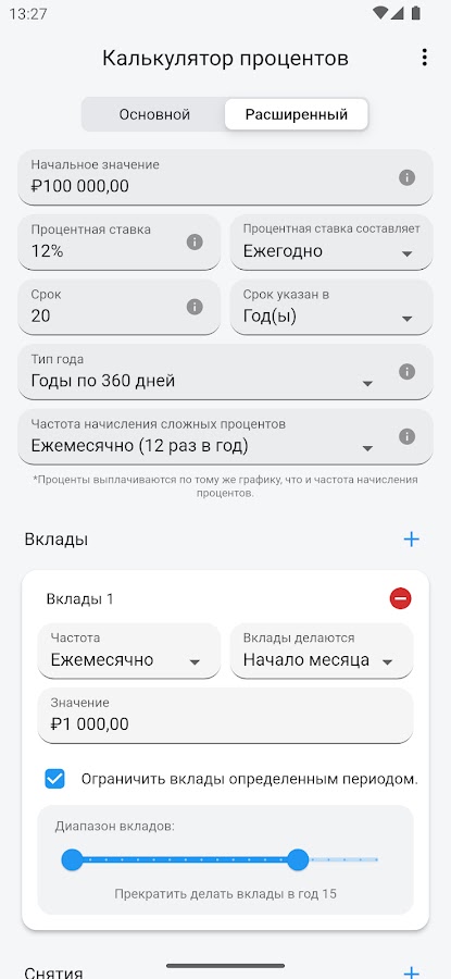 Будь вы планируете крупную покупку или просто хотите понять, как ваши деньги могут расти со временем, чтобы обеспечить себе достойную пенсию, это приложение станет отличным помощником на вашем пути к финансовой свободе.
