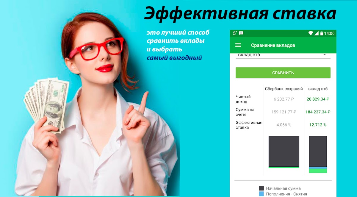 Если вы финансово-грамотный человек и выбираете, где открыть вклад — то приложение сможет сравнить разные варианты и понять, какой из них выгоднее. Приложение позволяет проконтролировать, как работают ваши сбережения денег.
