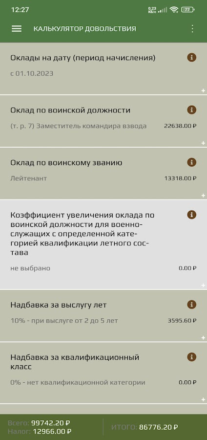 Информация о Калькулятор военнослужащего РФ