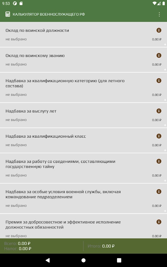 Описание Калькулятор военнослужащего РФ