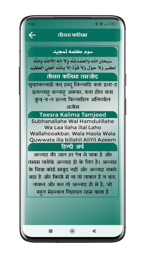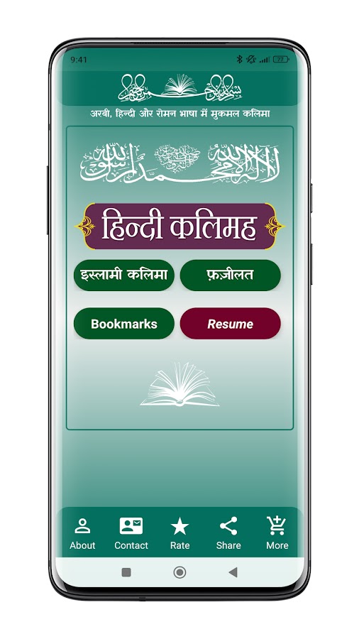 После установки Kalma на хинди | हिन्दी कलमा мобильное приложение вы можете читать Кальма Шариф Ки Китаб на хинди (कलमा शरीफ की कितबा) со многими полезными функциями.