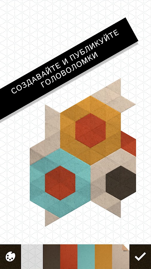 Создавайте свои головоломки KAMI в режиме инженера. Создавайте и публикуйте задачи, рассылайте их друзьям и предложите всем побить ваш рекорд по очкам.