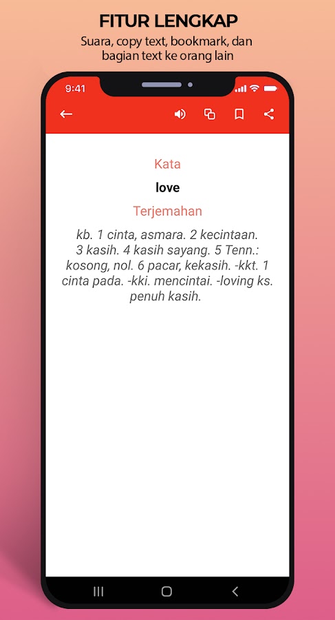 Это приложение предоставляет широкий спектр лексики и терминов на английском языке — индонезийский Если у вас есть трудности в поиске смысла термина на английском языке — Индонезия, пожалуйста, попробуйте это приложение в автономном режиме.