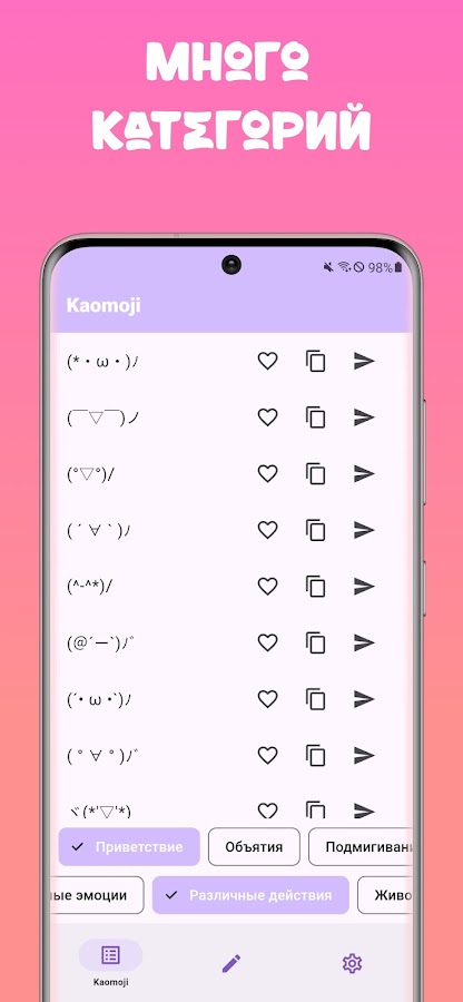 Если вы любите отправлять необычные смайлики в сообщениях или ищите японские kaomoji — тогда скачивайте данное приложение!
