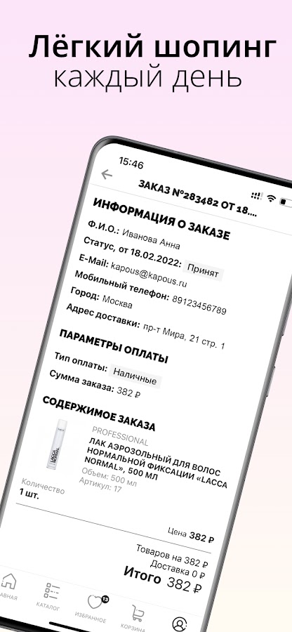 Интернет-магазин Kapous предлагает вам покупать профессиональную косметику для волос, лица и тела, не выходя из дома. В нашем приложении вы найдёте более 1500 товаров для таких процедур, как окрашивание, депиляция, маникюр и педикюр. Для парикмахеров и колористов у нас действует скидка 15% на все товары при выполнении условий. Доставка осуществляется в пункты самовывоза, курьерами и 5Post.