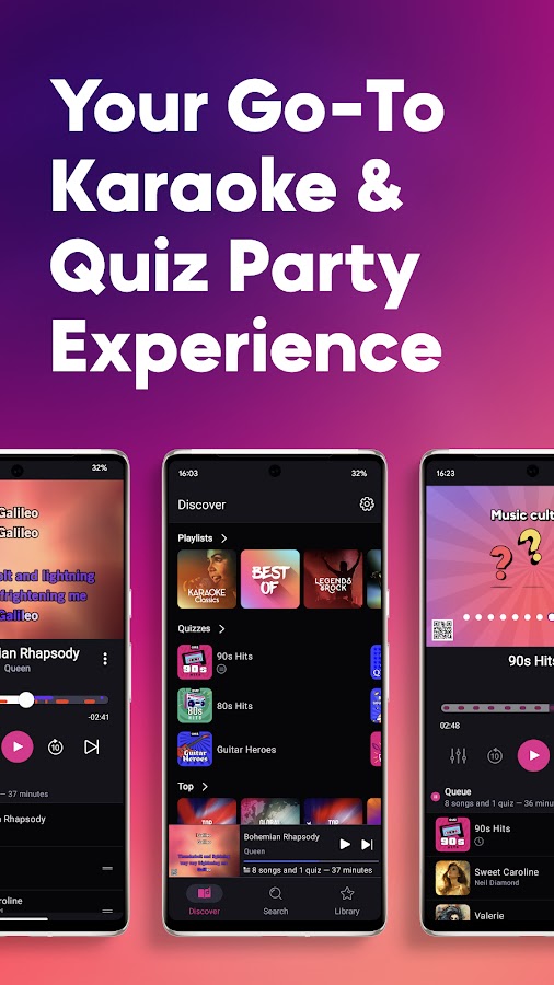 KaraFun: непревзойденное караоке на всех ваших устройствах! Улучшите свои вокальные навыки с помощью огромной библиотеки песен, музыкальной игры «Битва» и захватывающих музыкальных викторин, чтобы веселье не прекращалось! Пойте тысячи треков всех ваших любимых жанров с друзьями. Кроме того, вас ждут интерактивная игра с оценкой голоса и викторины на музыкальные темы, которые добавят азарта каждой сессии!