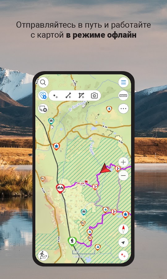 Определяйте свое местоположение и следуйте по намеченному маршруту. Используйте объекты на карте как ориентиры, оценивайте протяженность и сложность пути, оптимизируйте маршрут и уверенно достигайте цели.