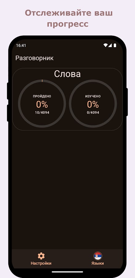 • Прогресс. Помечайте слова как изученные и отслеживайте ваш прогресс на удобных графиках.