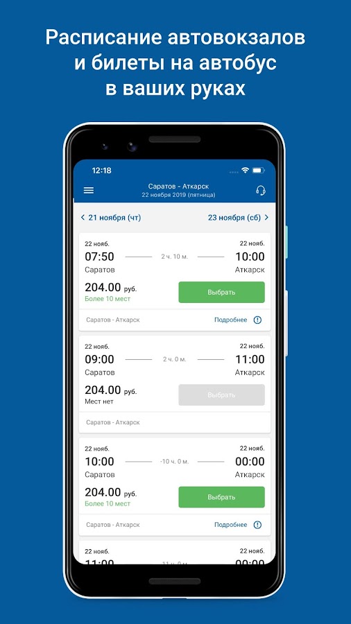 — выбор номера места в автобусе (на некоторых рейсах недоступно)