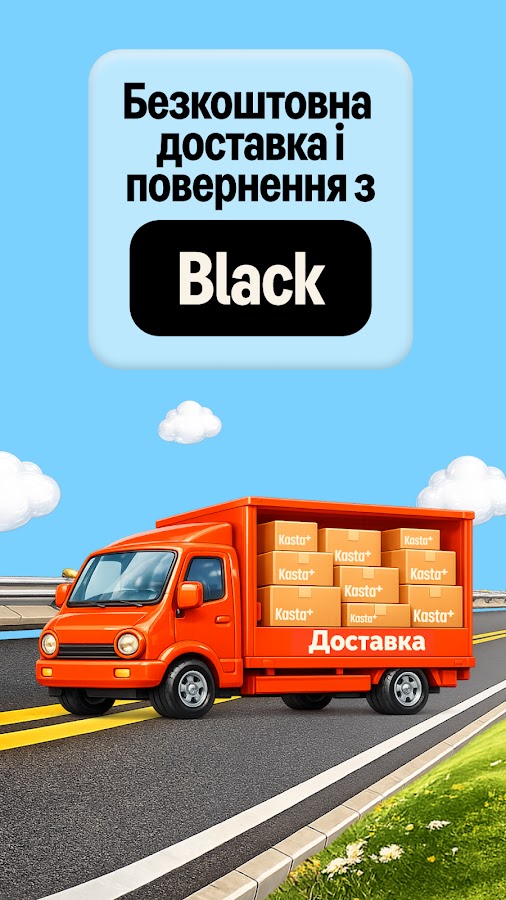 — программа лояльности Kasta Black: бесплатная доставка и возврат через Новую Почту, а также беспроцентная рассрочка на покупки