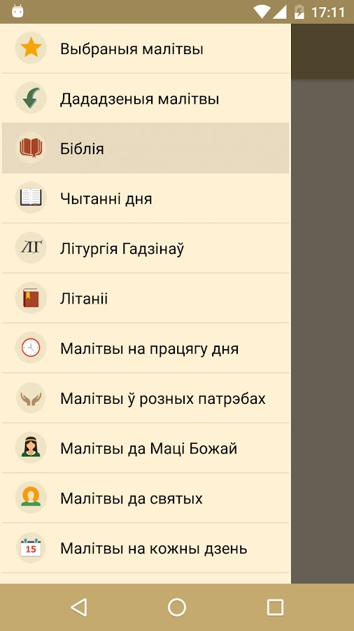 Приложение “Молитвенник” преимущественно на белорусском языке: