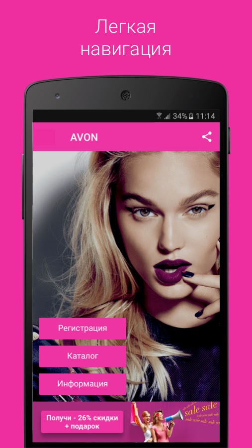 А еще – вы сможете получить скидку до 30% на товар компании Эйвон, для этого нужно только зарегистрироваться через приложение.