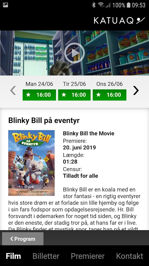 С помощью этого приложения у вас есть возможность просмотреть программу для Katuaq, а также увидеть дополнительную информацию о фильме, такую как трейлер, цензура, актеры, продолжительность и т. Д.
