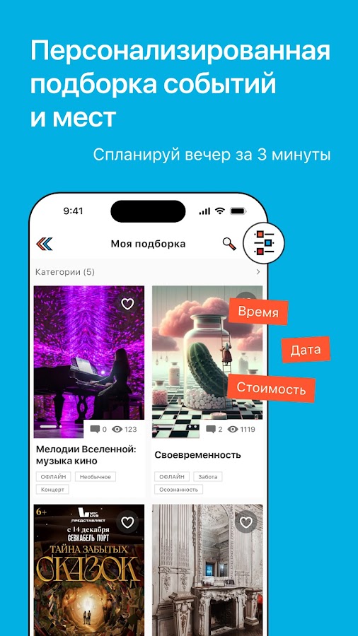 Добро пожаловать в приложение Кавёр – твоего надежного гида по необычным событиям в Москве и Санкт-Петербурге! Наше приложение предоставляет уникальную возможность погрузиться в мир культуры, искусства и знакомств. Скачай Кавёр и начни увлекательное путешествие по этим двум удивительным городам.
