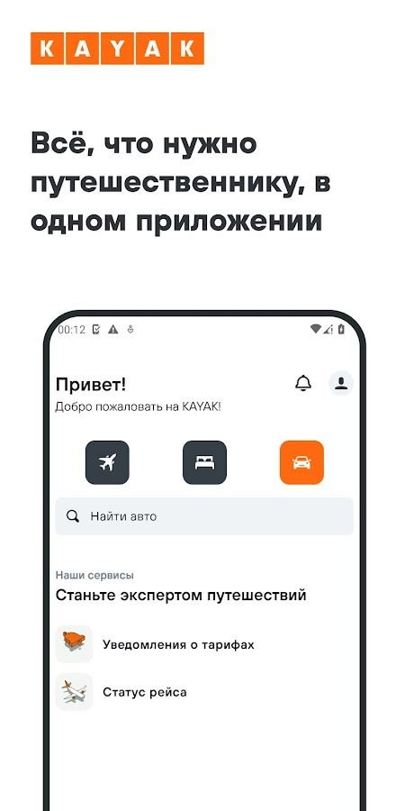 KAYAK: авиабилеты, отели, авто
